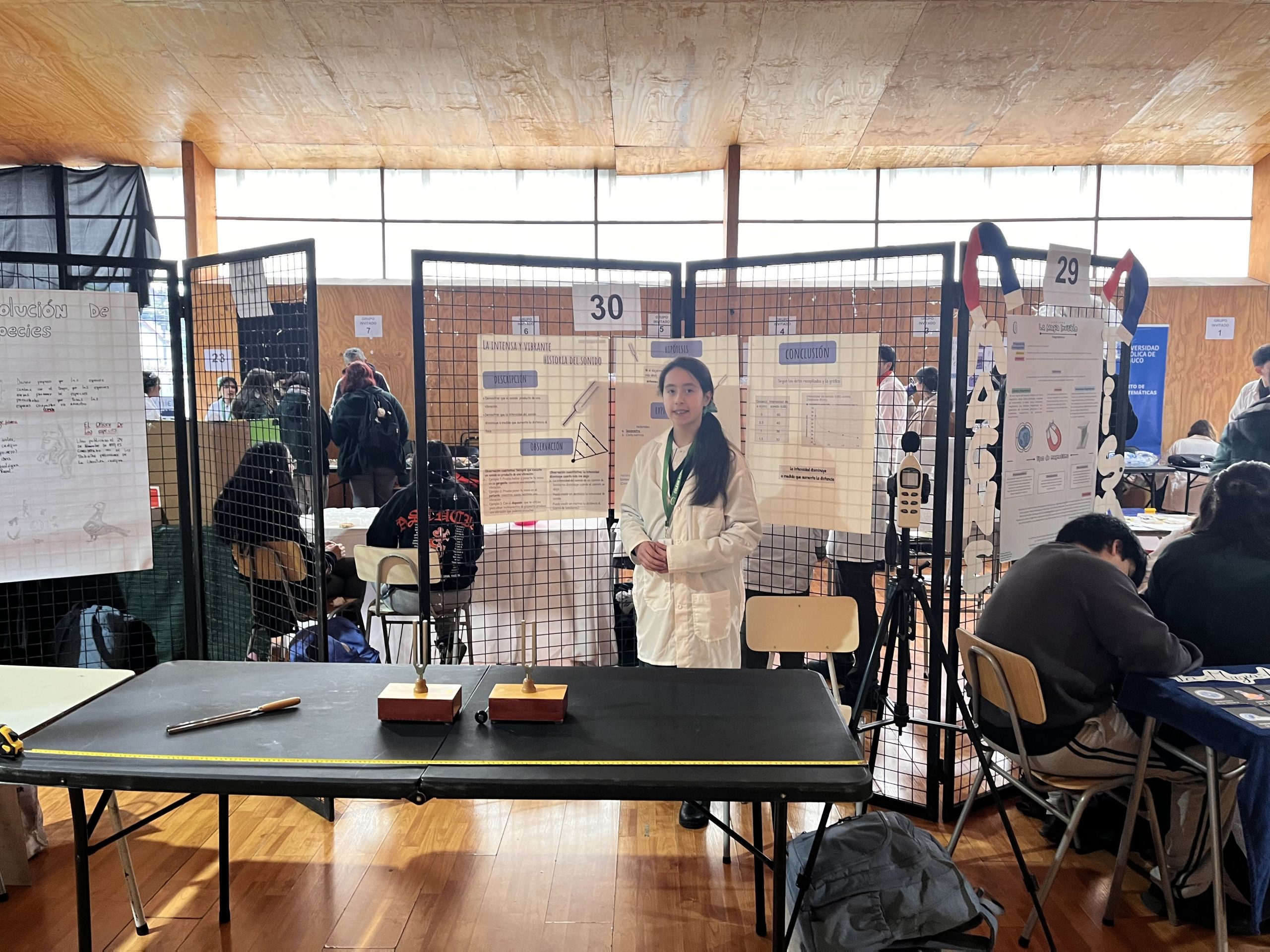 Durante el evento, los estudiantes presentaron cinco actividades experimentales, en las cuales debieron destacar el rol de las matemáticas en el desarrollo teórico de cada experimento. Esta integración entre teoría matemática y experimentación práctica es una de las competencias clave del curso MAT1162, a cargo del profesor Mg. José Luis Barahona.